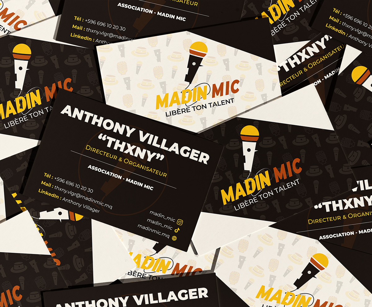 Identité visuelle complète pour Madin Mic, une scène ouverte caribéenne. Création du branding, des supports événementiels et du site pour révéler le talent de la communauté musicale.